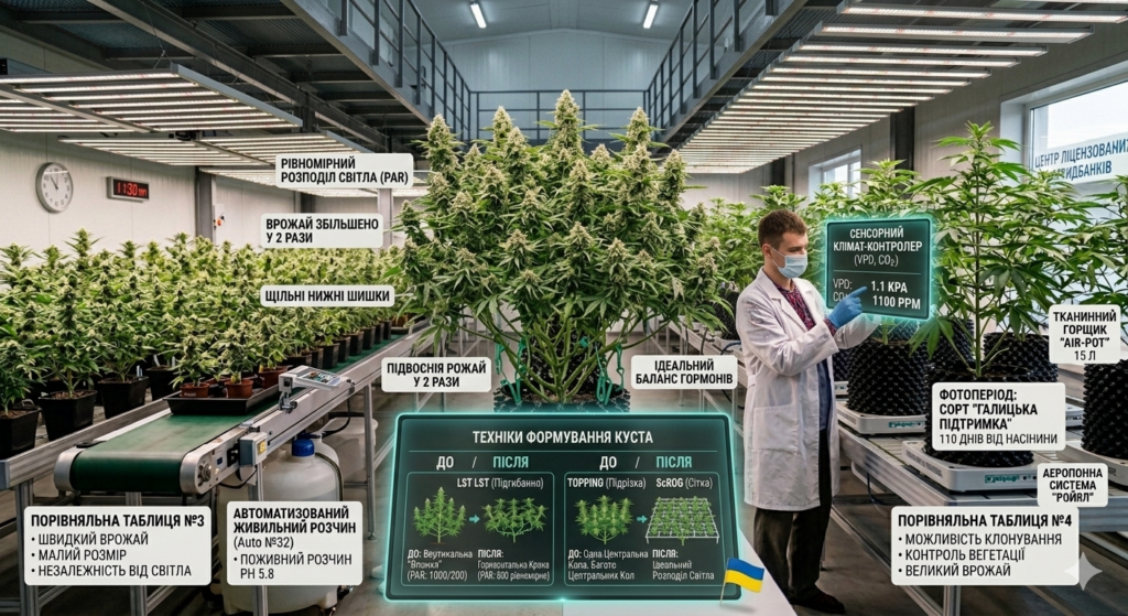 У 2026 році українські гровери зрозуміли: світло — це найдорожчий ресурс, і його не можна витрачати даремно. Більшість новачків роблять одну й ту саму помилку — дозволяють рослині рости, як їй заманеться (у формі «різдвяної ялинки»). Результат: одна величезна центральна кола і безліч дрібних, пухких суцвіть у нижньому ярусі, які не отримали достатньо фотонів.